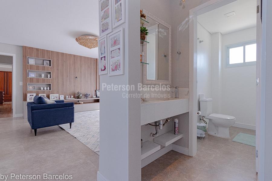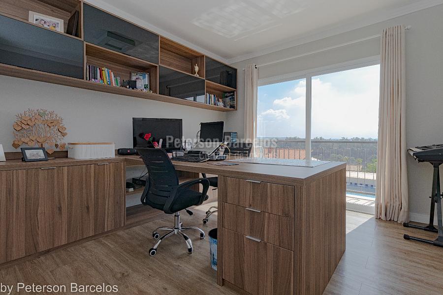 O imóvel possui ambientes distribuidos em 3 pavimentos, sendo que no andar do nível intermediário (nível da rua) estão os abientes sociais: sala de estar com TV, lavado, sala de jantar com cristaleira e adega planejada, disposta em conceito "open space" com a cozinha, escritório e uma das suítes, todos os abientes também conectados por uma agradável varanda.