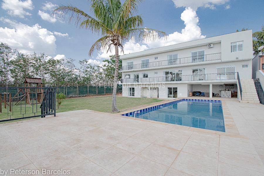 No imóvel estão disponibilizadas duas garagens cobertas, para dois veículos em cada uma delas, depósito e banheiro de apoio da piscina, além de outro amplo depósito, onde também está instalada a casa de máquinas da piscina. Completando a descrição do imóvel está disponível um playground, pomar com espécies frutíferas, jardim, sisterna e poço semi-artesiano.