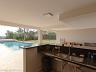 A área de lazer é composta por um salão de festas com churrasqueira, fogão caipira e forno de lenha, balcão com instalação completa (pia e fogão) em espaço próximo à uma impactante piscina com sistema de aquecimento e cascata. Logo abaixo da piscina está disponível a sauna, que possui uma ante-sala para ducha e visores subaquaticos.