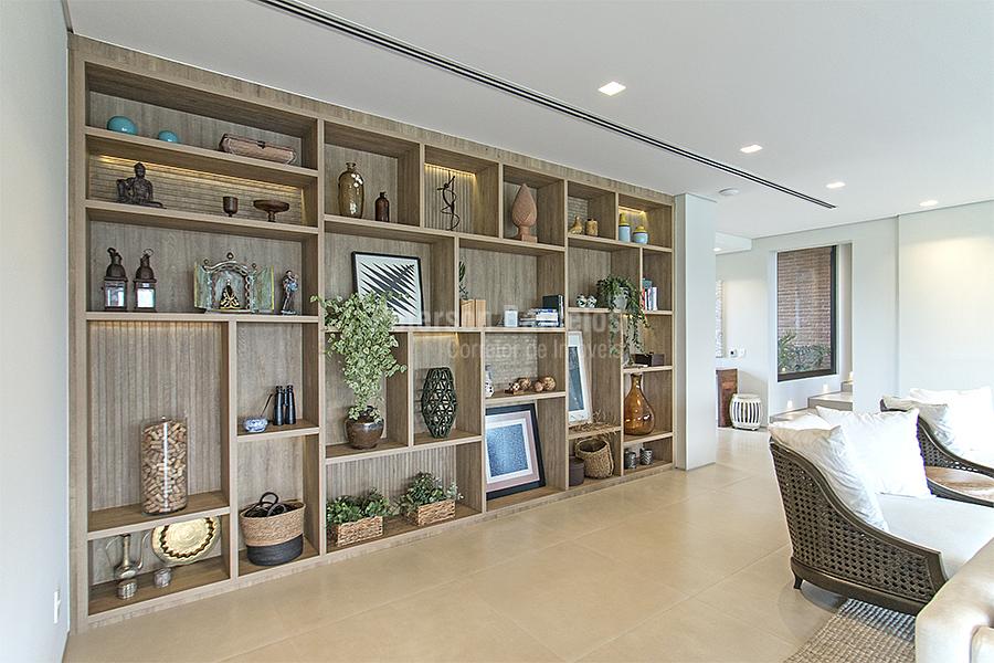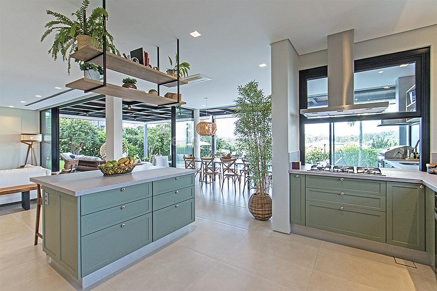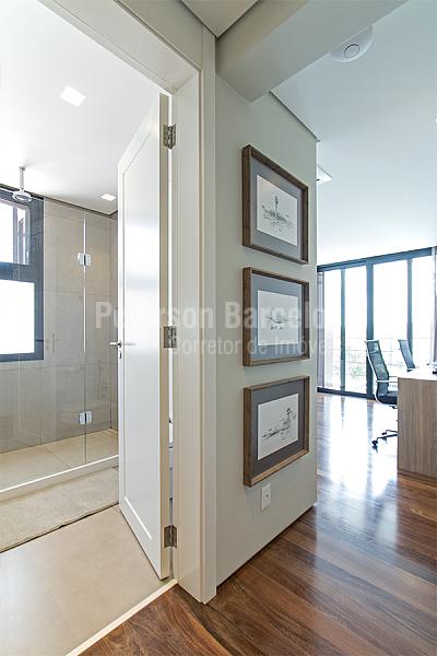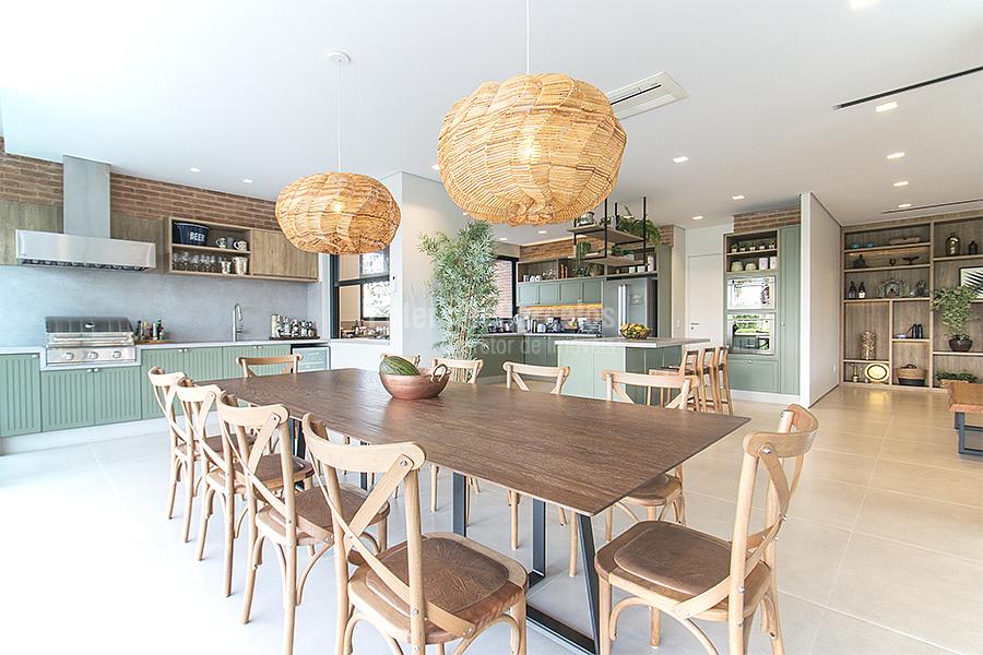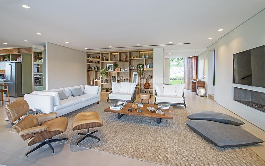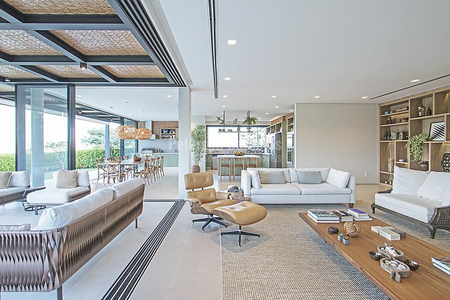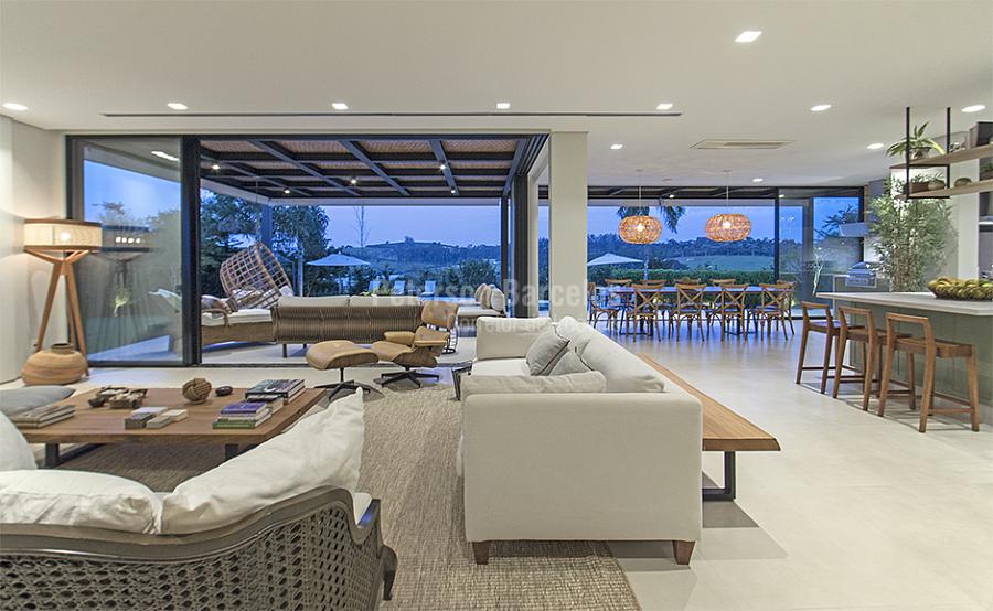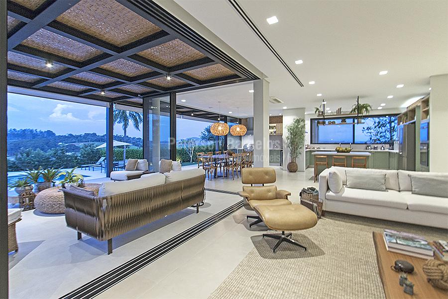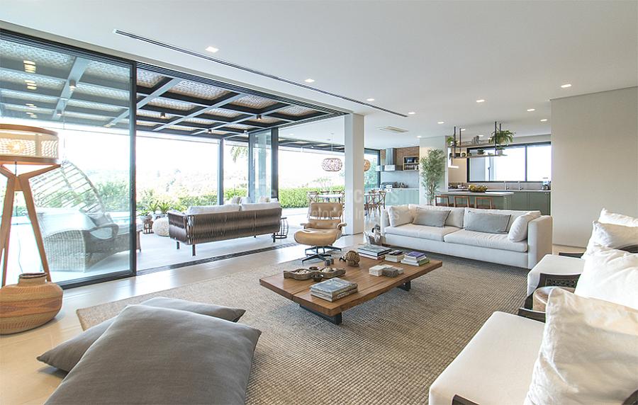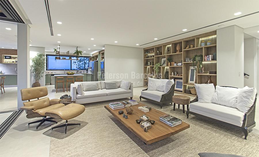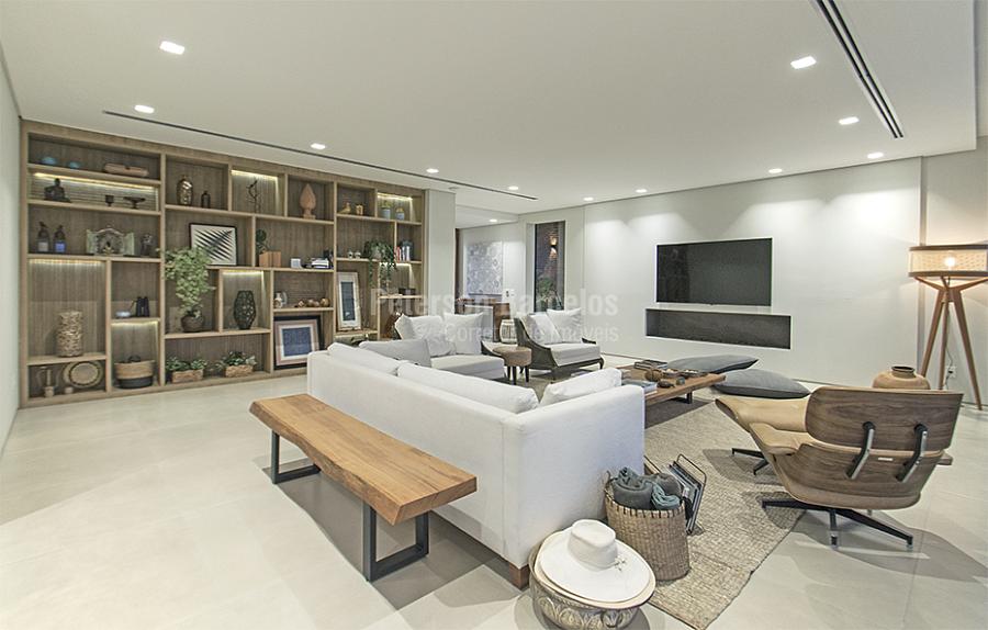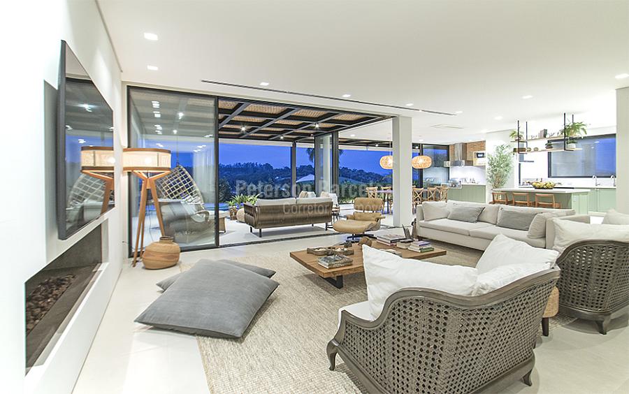 O living possui espaço para formação de 3 ambientes e faz uma conexão perfeita com a cozinha, área gourmet, varanda e piscina. As amplas esquadrias proporcionam muita iluminação e ventilação natural e permite que a agradável vista panorâmica seja contemplada em qualquer ambiente.