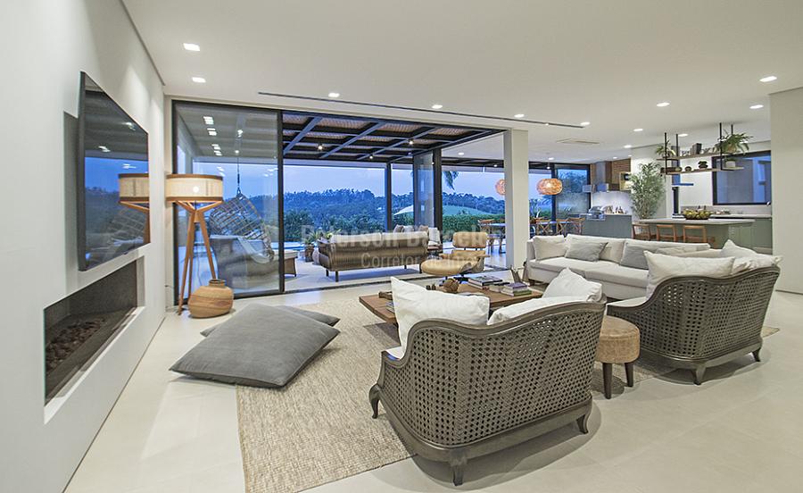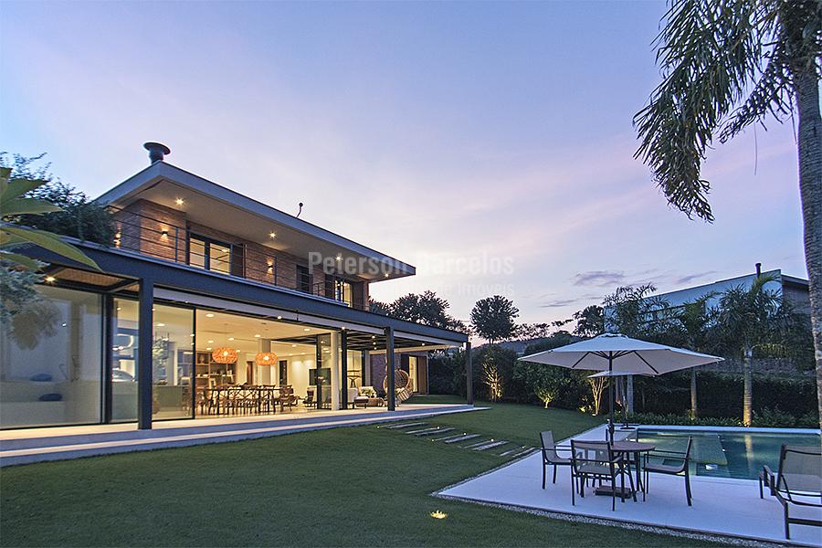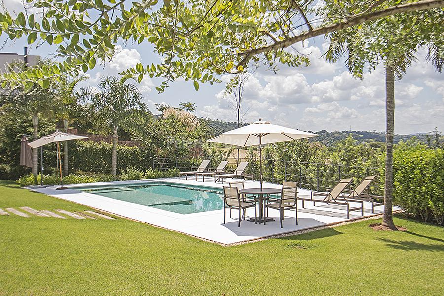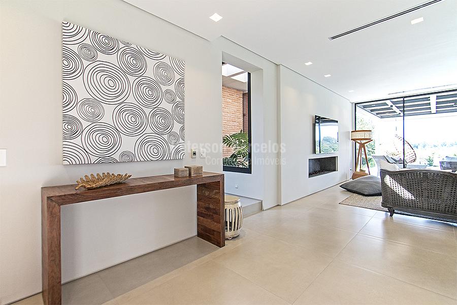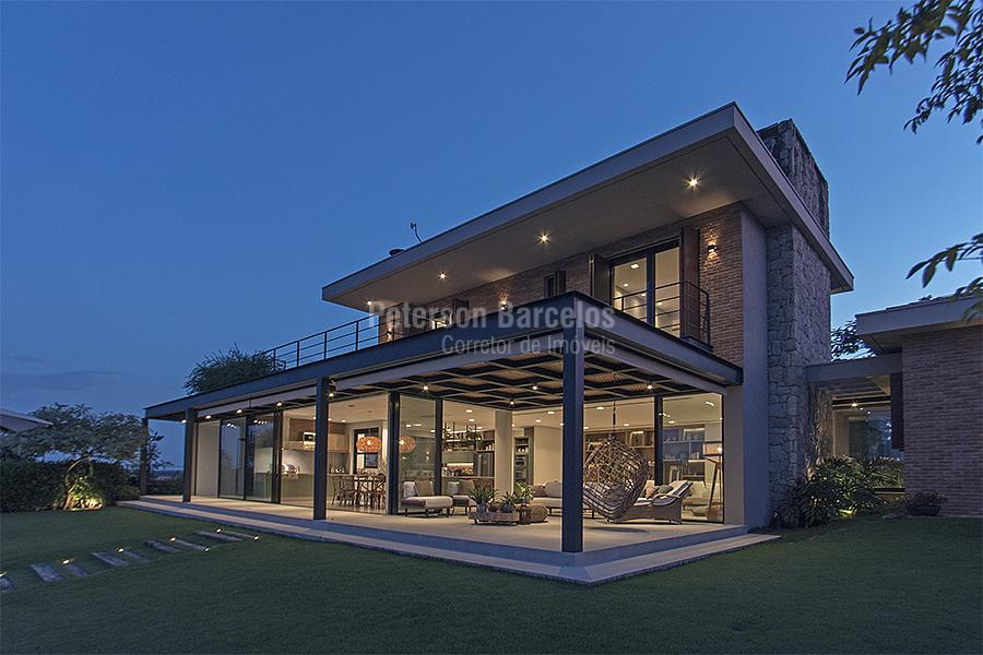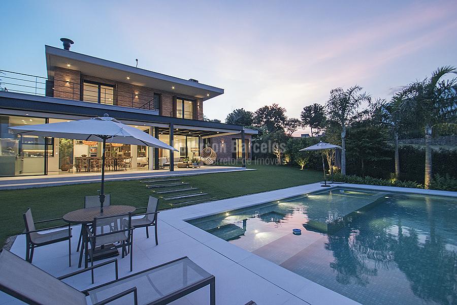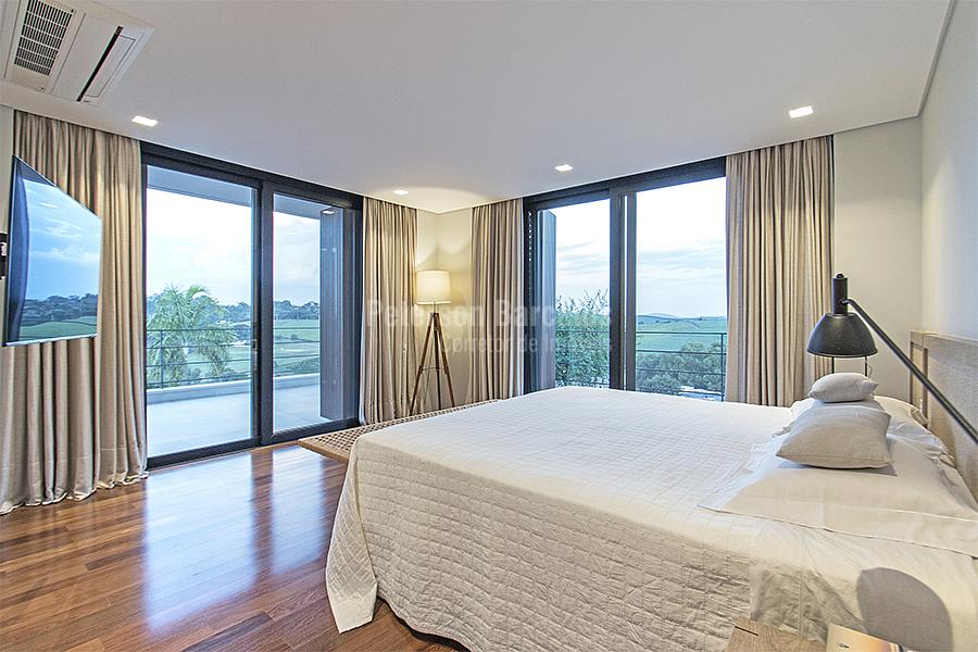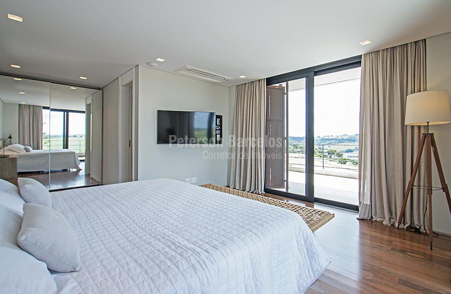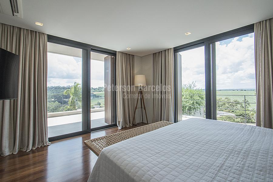 São 4 suítes, todas com ar-condicionado frio e quente e possuem acesso à varanda com uma vista panorâmica impactante. A casa ainda possui câmeras de segurança, sistema de automação para a iluminação externa, interna e de irrigação, sauna a vapor, piscina com deck molhado e spa, aquecidos por sistema a gás e elétrico com rápido funcionamento no inverno. Lavanderia ampla e vaga para 4 veículos (2 vagas coberta e 2 sem cobertura).