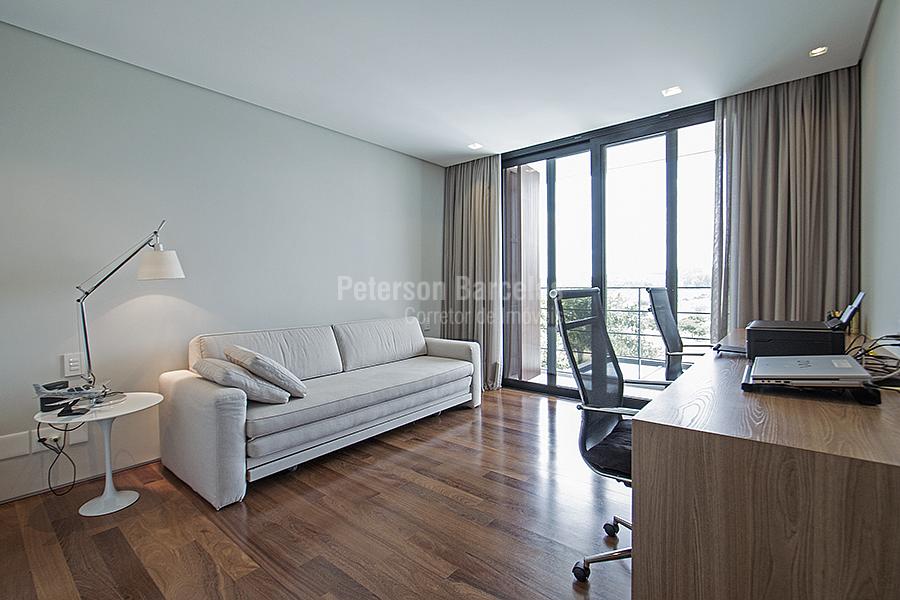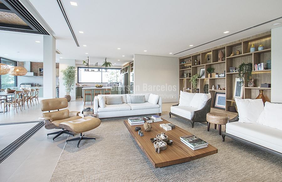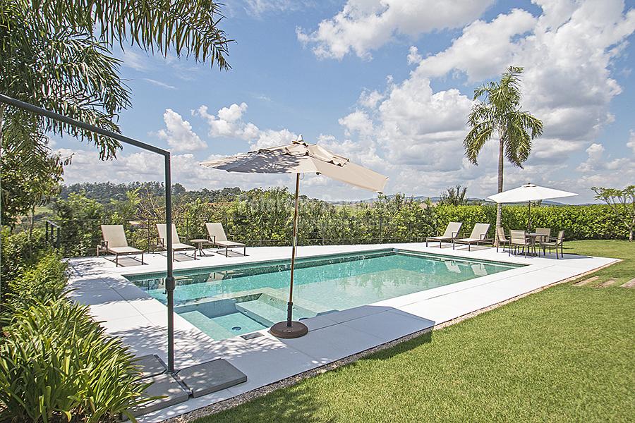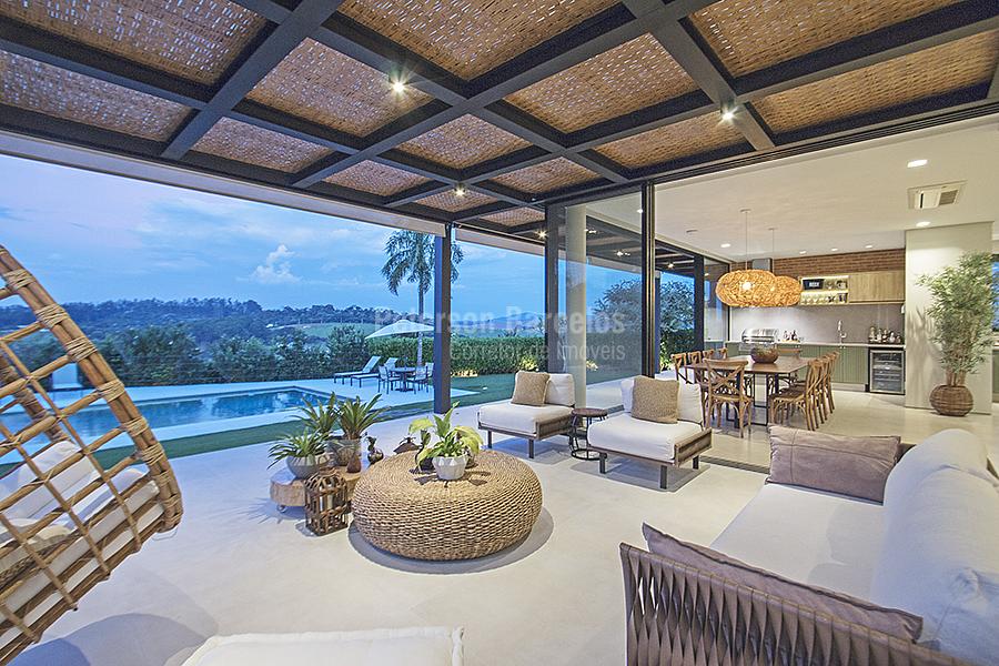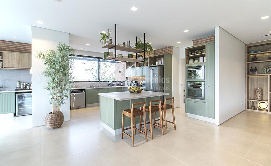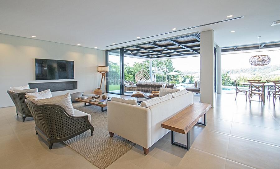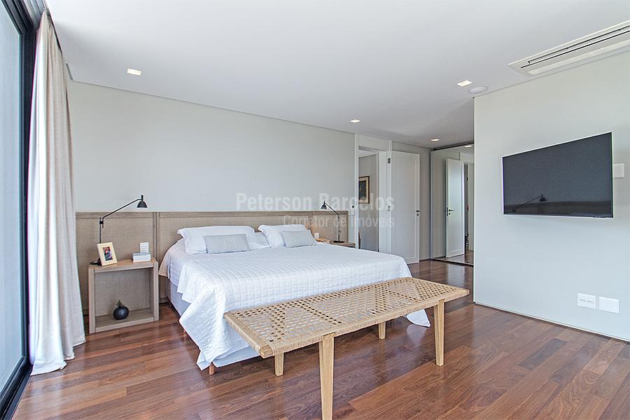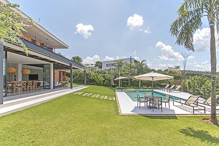 São 4 suítes, todas com ar-condicionado frio e quente e possuem acesso à varanda com uma vista panorâmica impactante. A casa ainda possui câmeras de segurança, sistema de automação para a iluminação externa, interna e de irrigação, sauna a vapor, piscina com deck molhado e spa, aquecidos por sistema a gás e elétrico com rápido funcionamento no inverno. Lavanderia ampla e vaga para 4 veículos (2 vagas coberta e 2 sem cobertura).