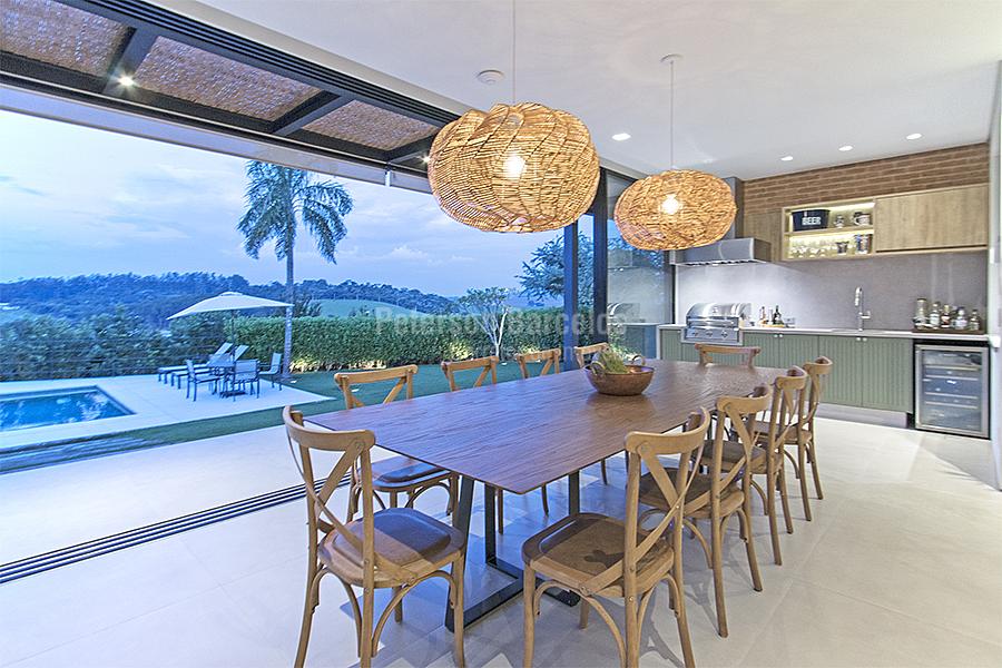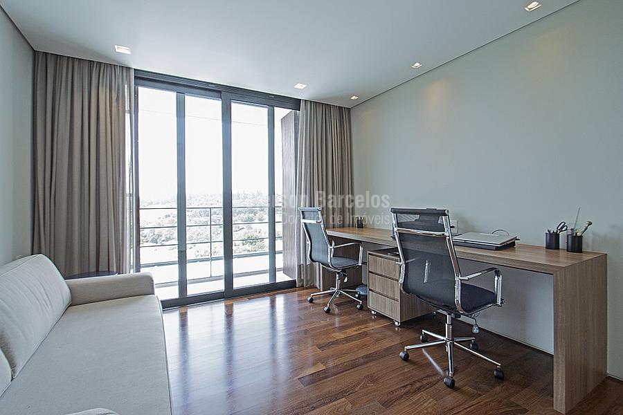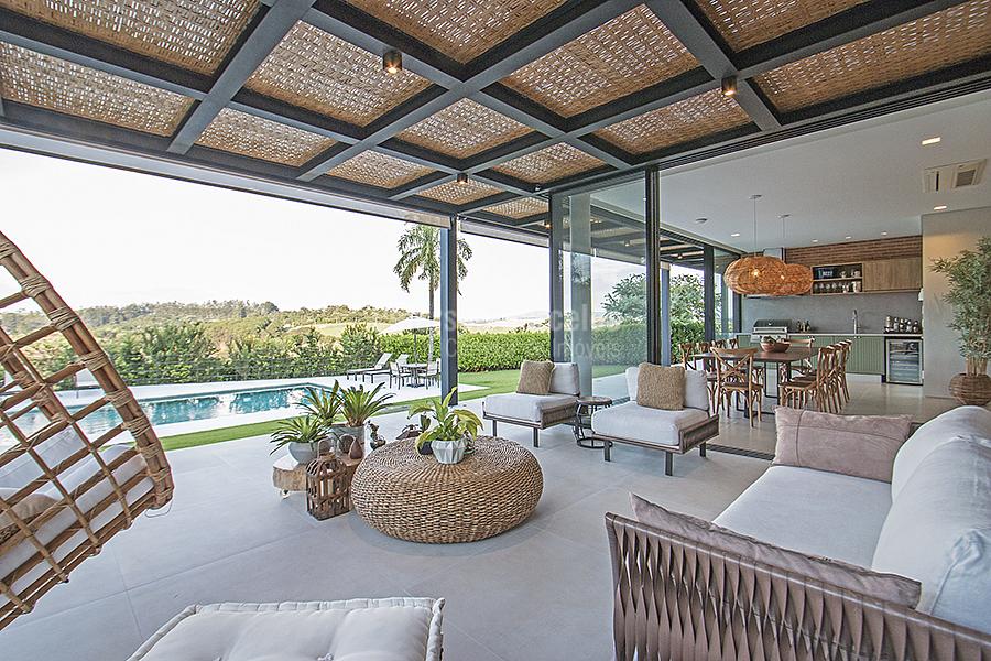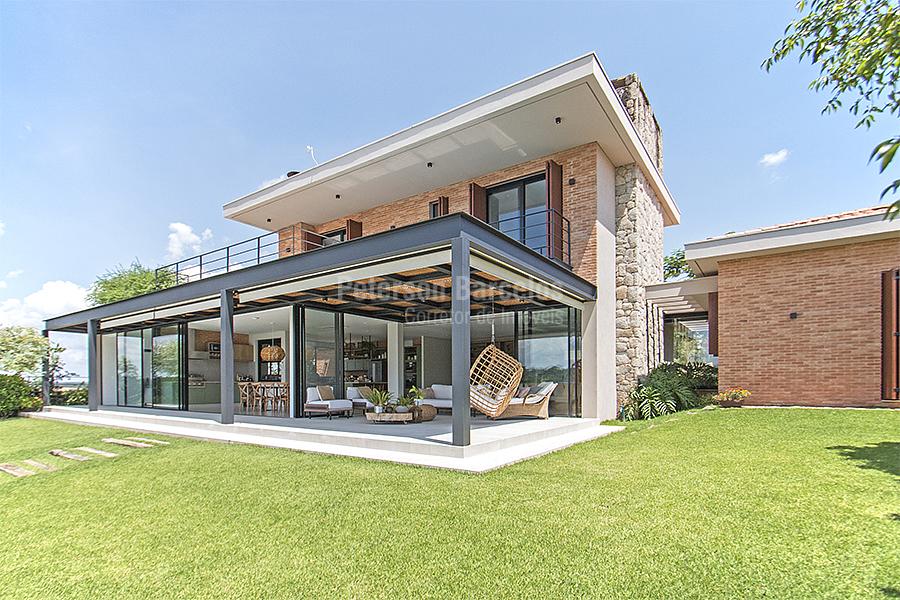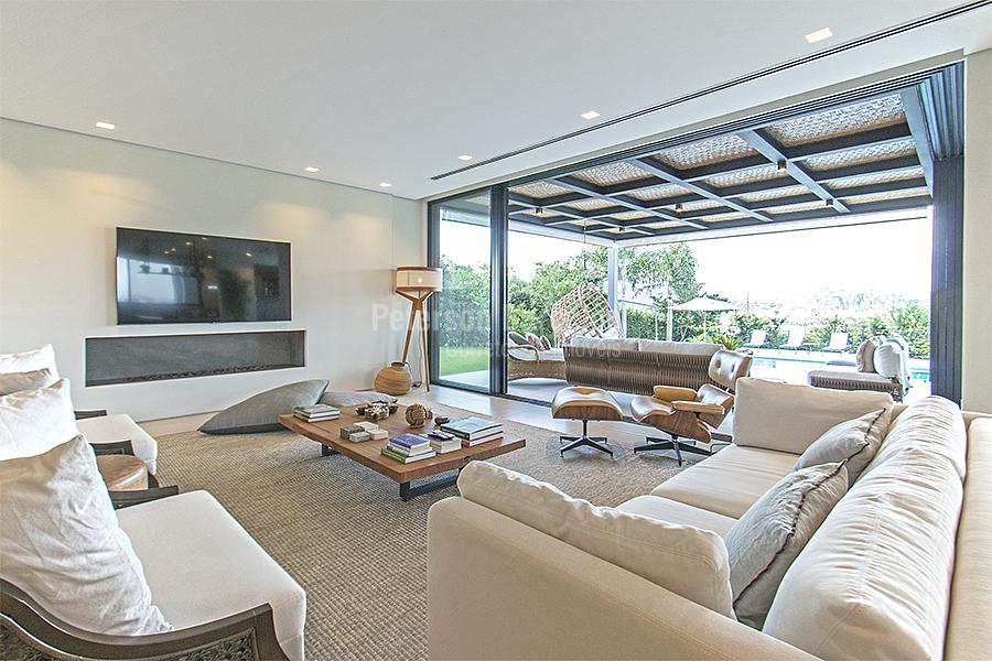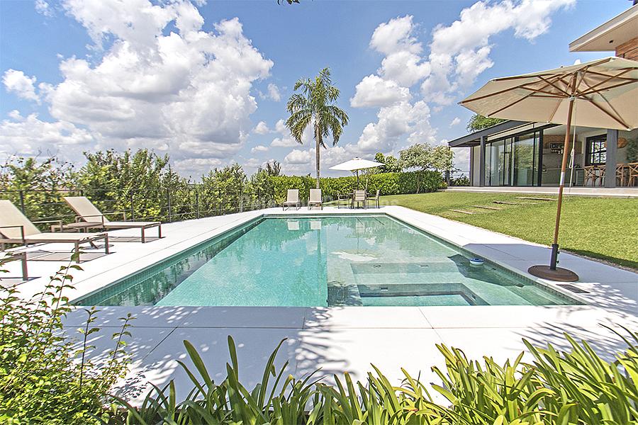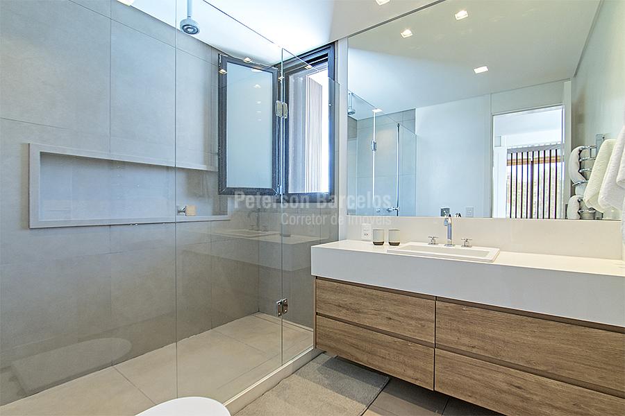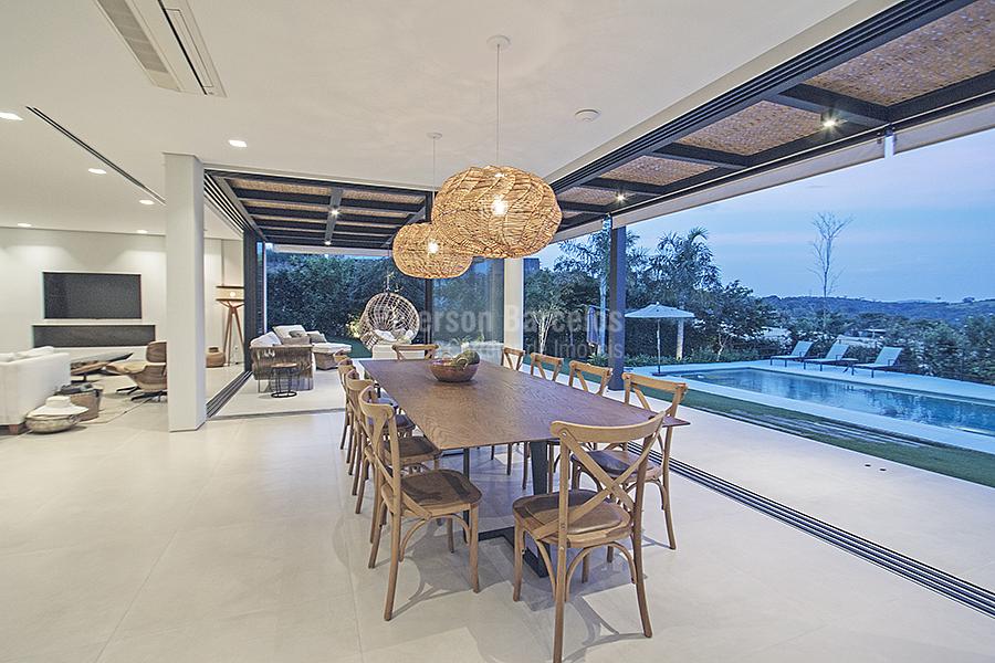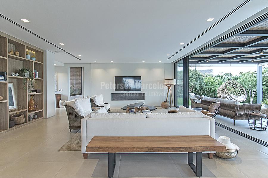 São 4 suítes, todas com ar-condicionado frio e quente e possuem acesso à varanda com uma vista panorâmica impactante. A casa ainda possui câmeras de segurança, sistema de automação para a iluminação externa, interna e de irrigação, sauna a vapor, piscina com deck molhado e spa, aquecidos por sistema a gás e elétrico com rápido funcionamento no inverno. Lavanderia ampla e vaga para 4 veículos (2 vagas coberta e 2 sem cobertura).