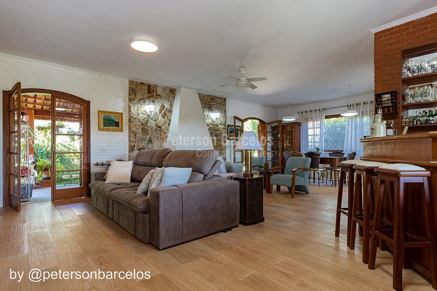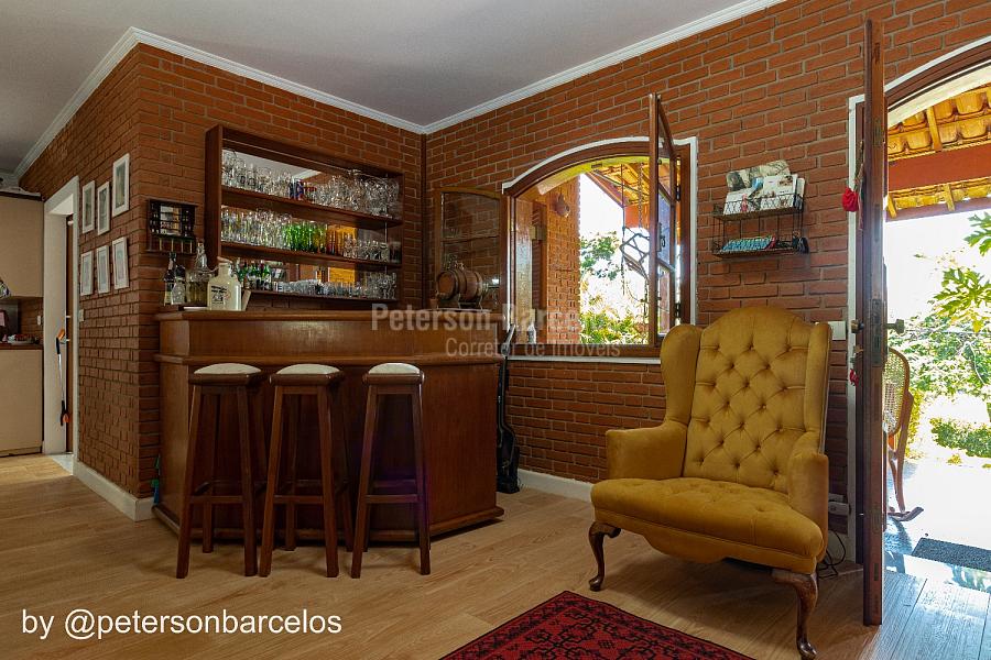 Localizada em um dos melhores condomínios de alto padrão em Itatiba-SP, possui, 1.827m² de terreno com ótima topografia distribuída em dois platôs e 356m² de área construída, composta por: sala de estar em três ambientes com lareira e varanda, lavabo, sala de jantar com boa de integração à cozinha, ampla despensa e lavanderia coberta. Ala íntima reservada composta por 3 espaçosos dormitórios, sendo uma suíte. Salão de festa com churrasqueira e forno de pizza, quarto de hóspedes e banheiro. Piscina de alvenaria, espaço para horta e pomar, e muito espaço gramado para atividades de lazer e esportes. Paisagismo formado por plantas, palmeiras e árvores frutíferas.