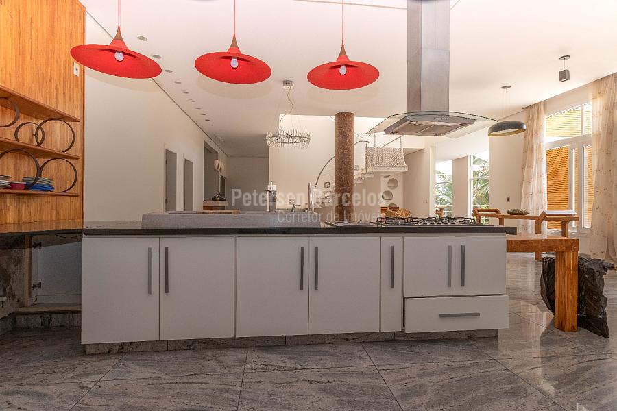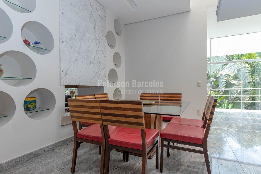 Em direção oposta à sala de estar, existem 2 salas de jantar integradas com a cozinha em conceito open space, despensa e lavanderia com área interna e externa, banheiro e quarto de apoio.