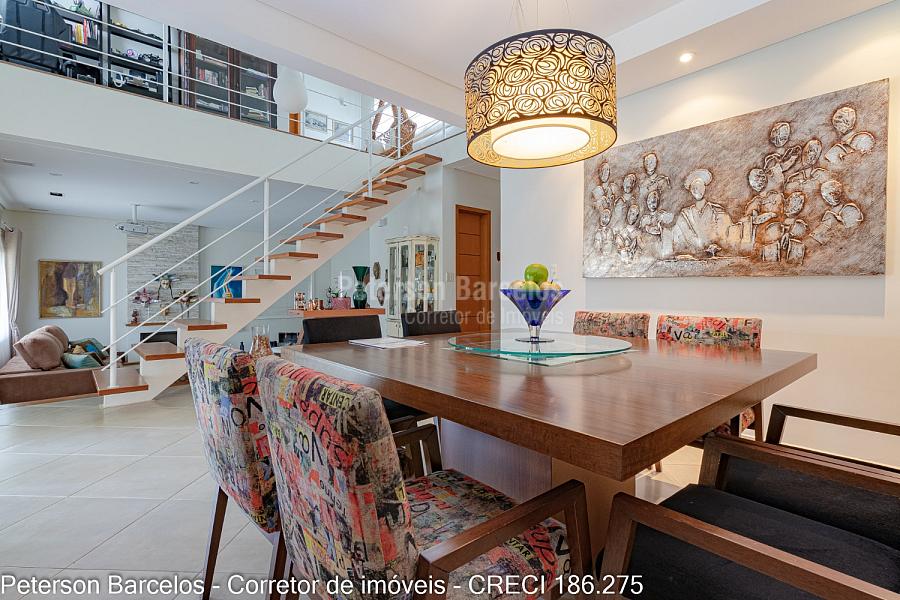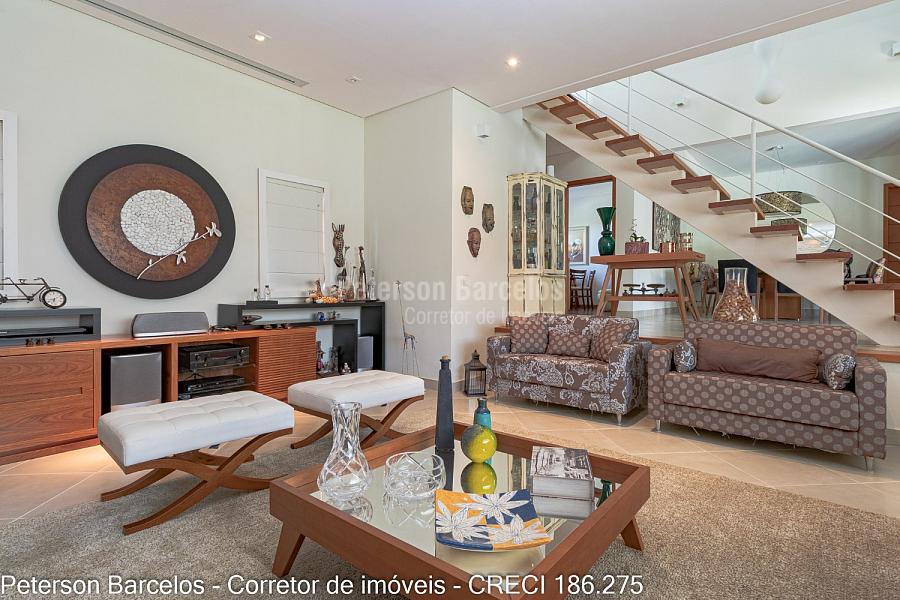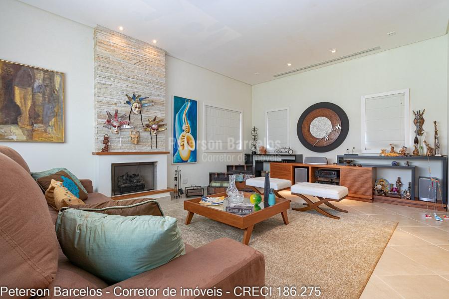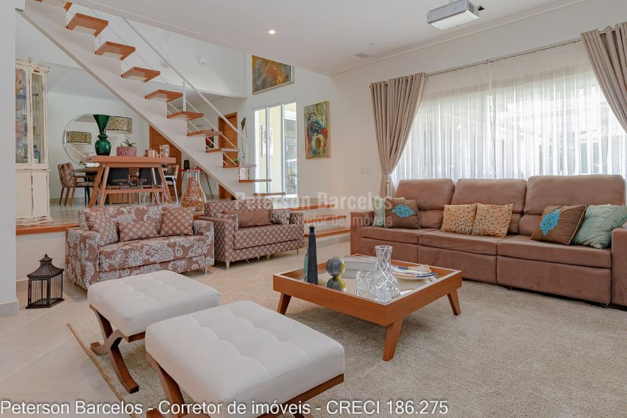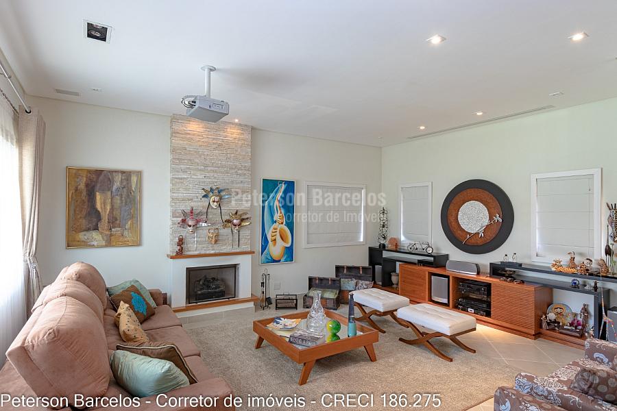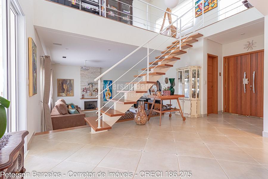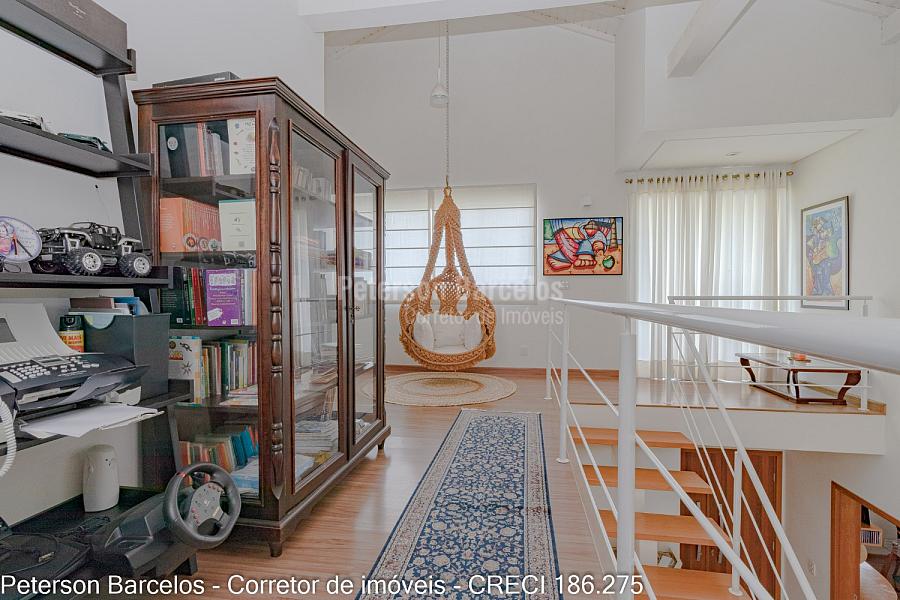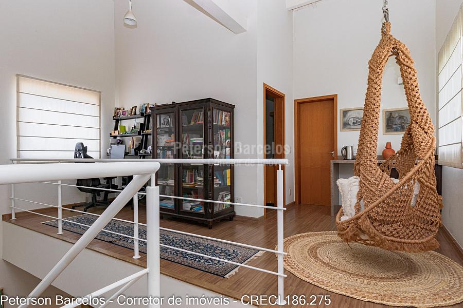 A residência possui hall de entrada, escritório, lavabo, sala de estar com lareira e sala de jantar. Um mezanino está disponível com espaço para formação de sala de estar, um segundo escritório, dormitório e banheiro.