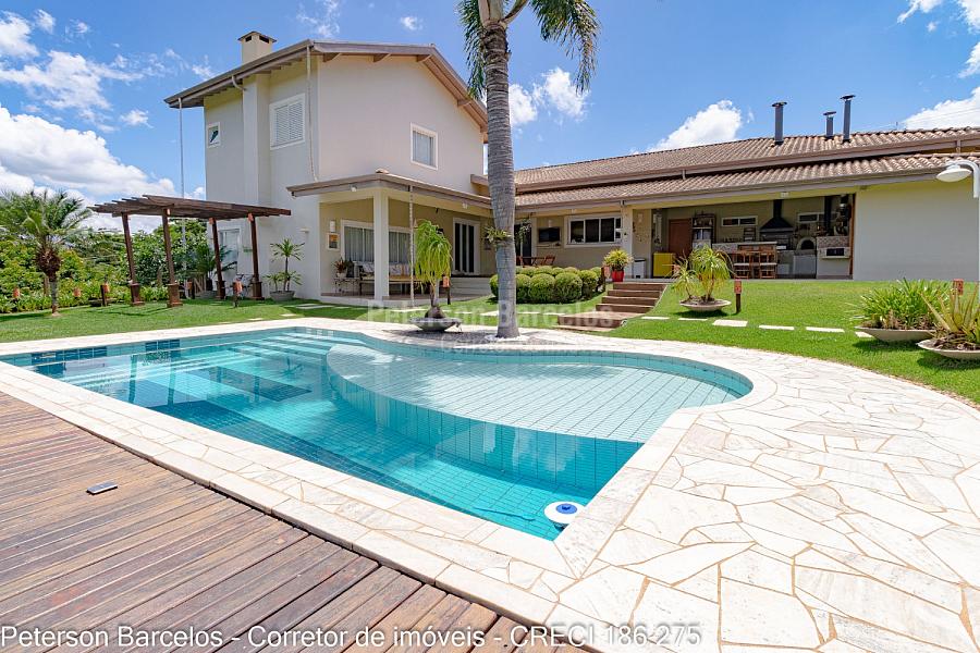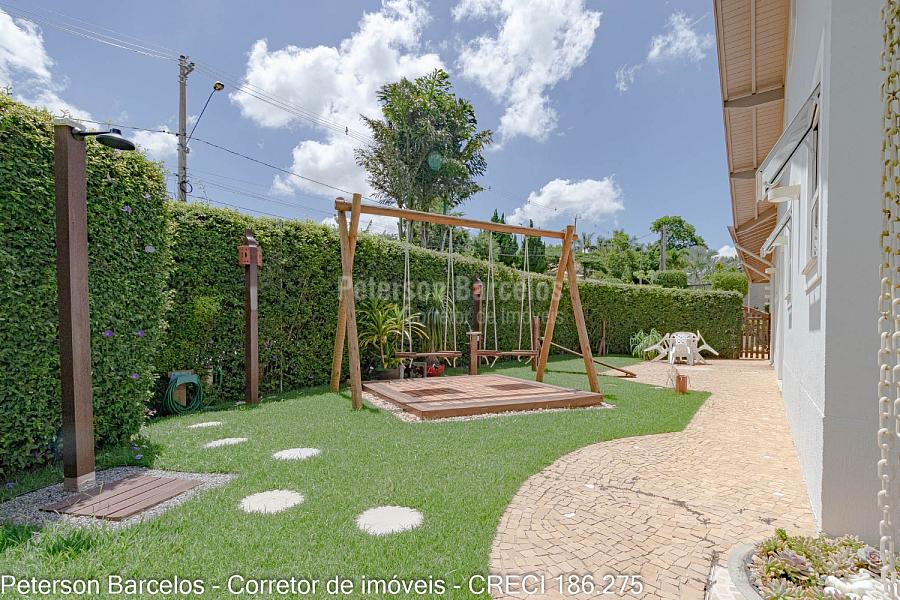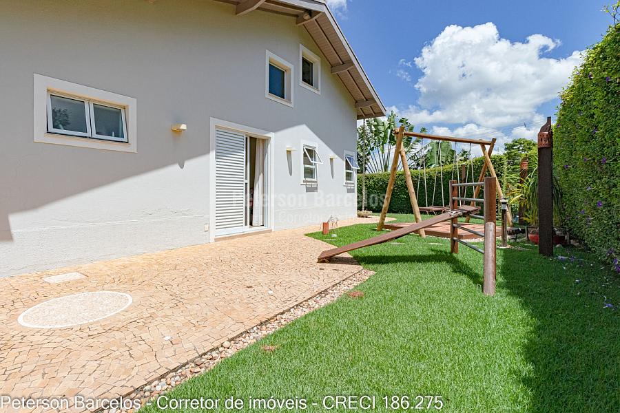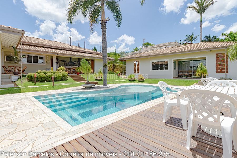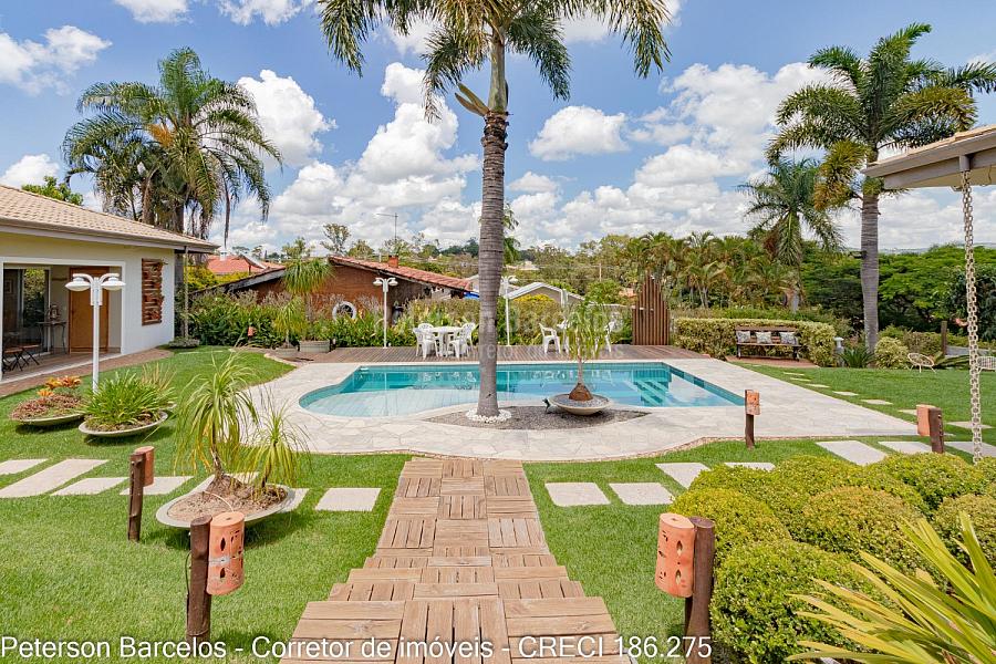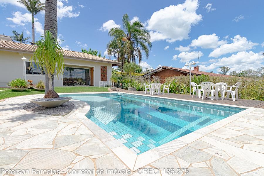 A residência oferece ainda: piscina com geometria atrativa, “deck” molhado, “deck solarium”, ducha e um jardim com paisagismo envolvente, suíte de funcionário (a), canil, pomar e garagem para 6 veículos, sendo 2 vagas cobertas. A residência conta com sistema de aquecimento solar e poço semi-artesiano totalmente regularizado.