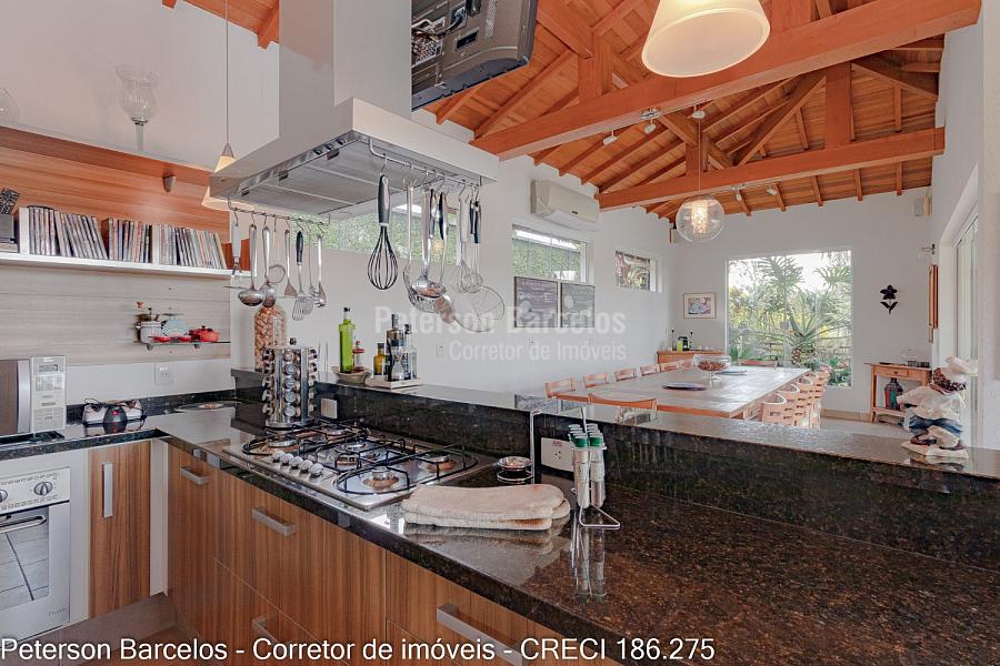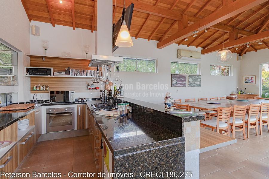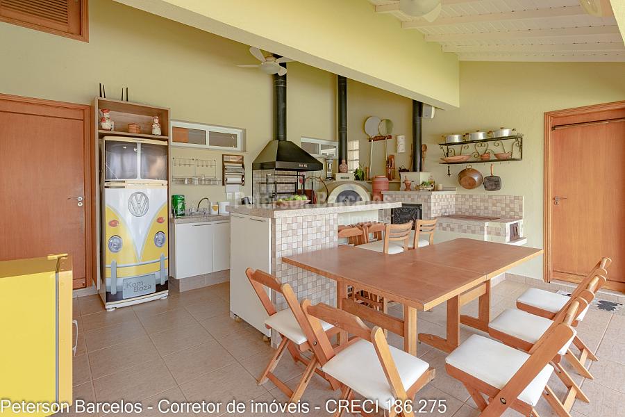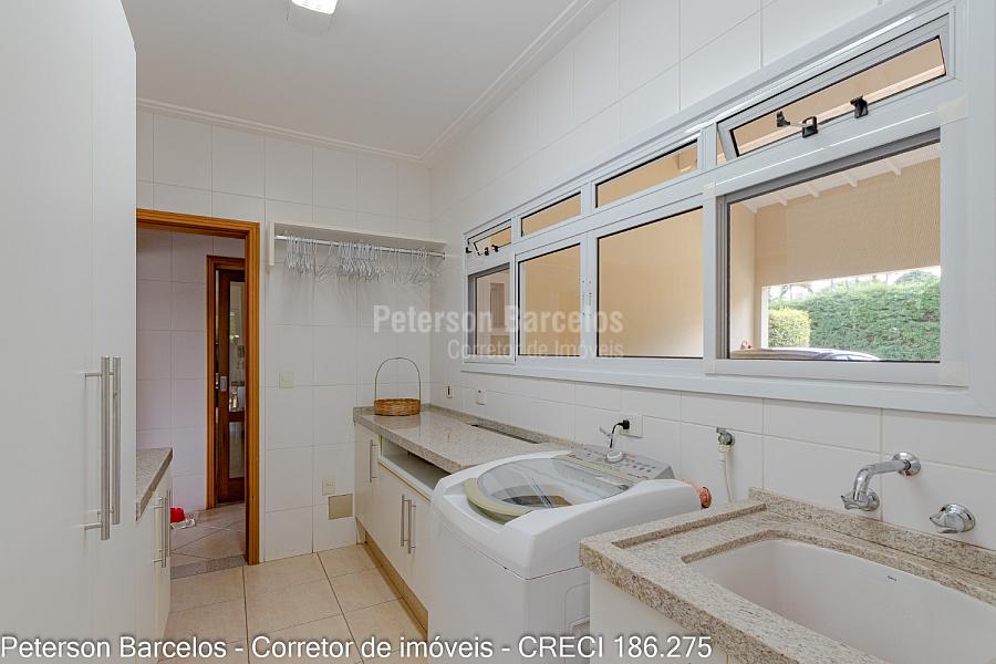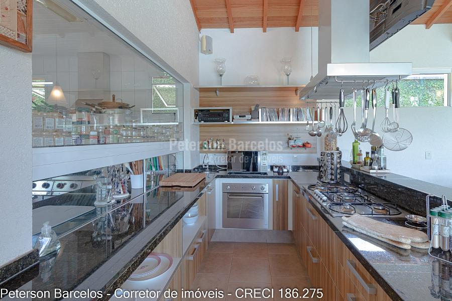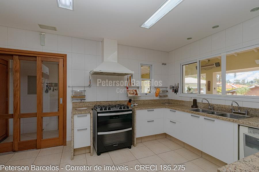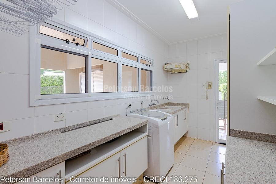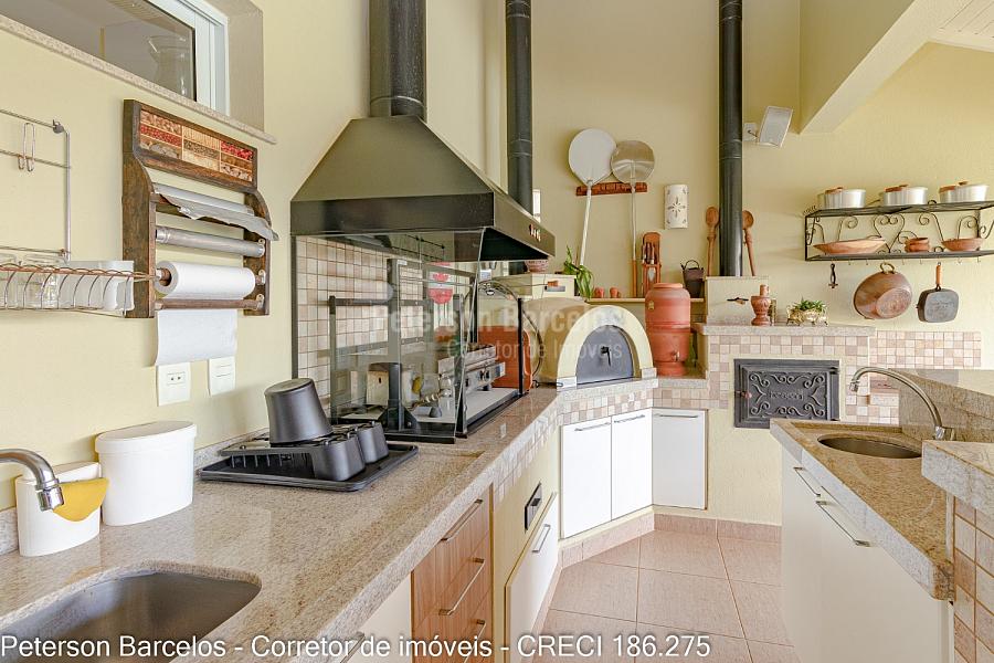 A cozinha possui copa, uma ampla despensa e está conectada com uma área gourmet equipada com balcão, churrasqueira e forno à lenha. A lavanderia está instalada em área reservada e discreta.