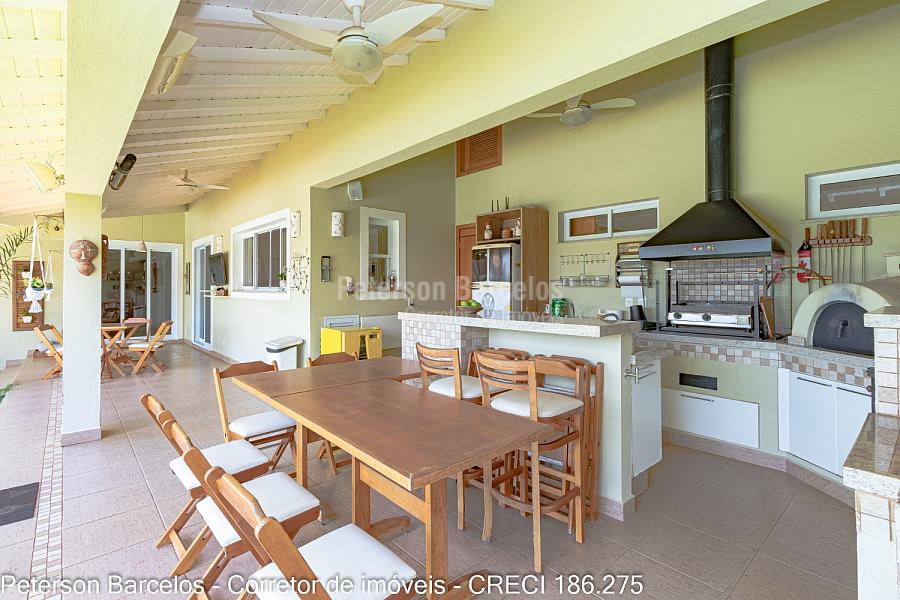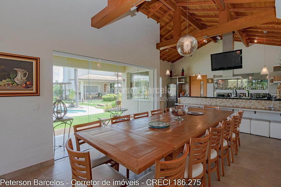 A residência é toda avarandada e possui uma impactante vista panorâmica de face oeste com o mais lindo pôr do sol. Possui ainda um amplo salão de festas com uma cozinha digna de “Chef”, um espaço planejado para receber a família e amigos e desfrutar de dias memoráveis à beira da piscina.