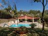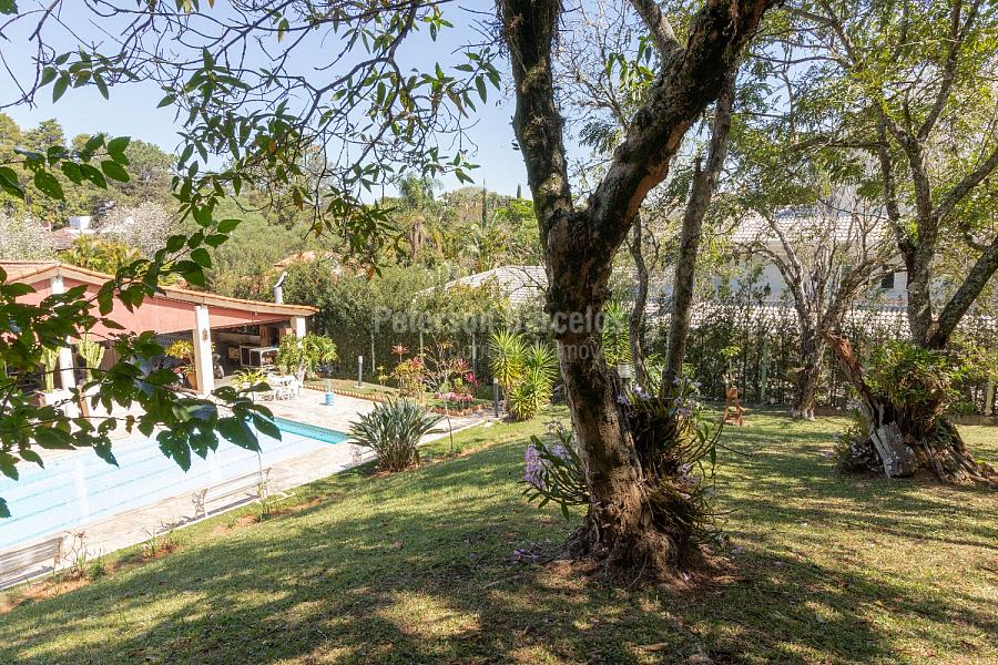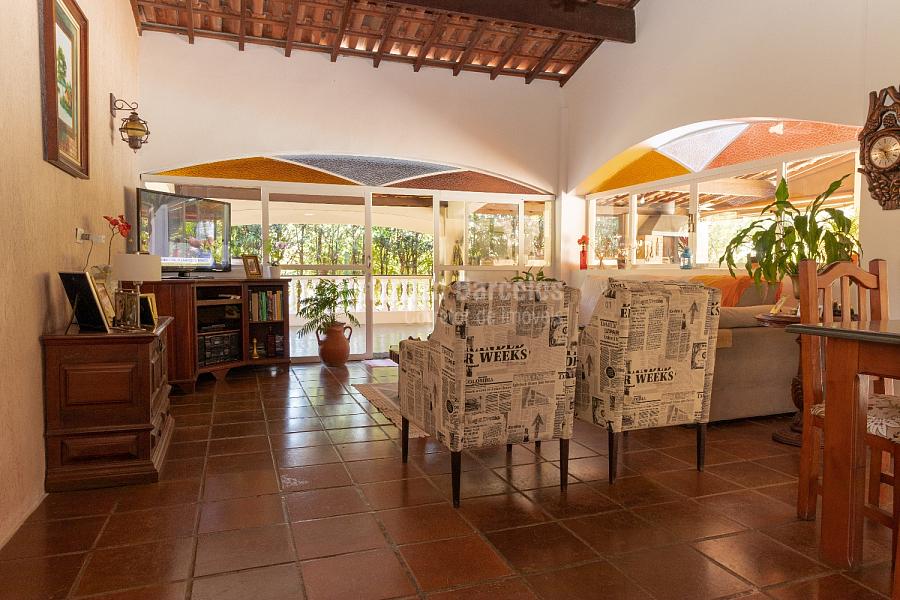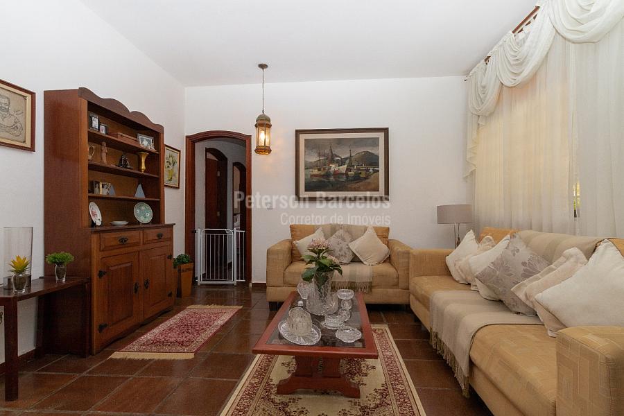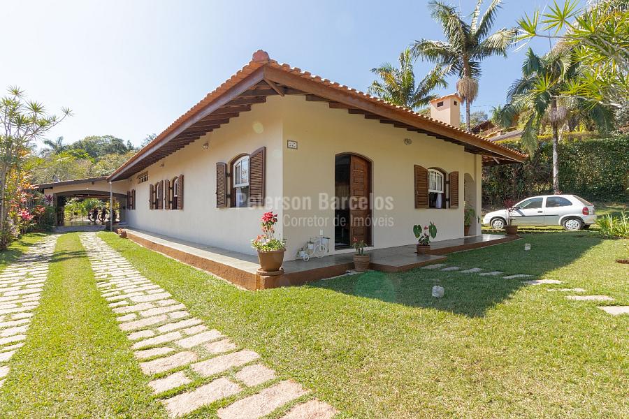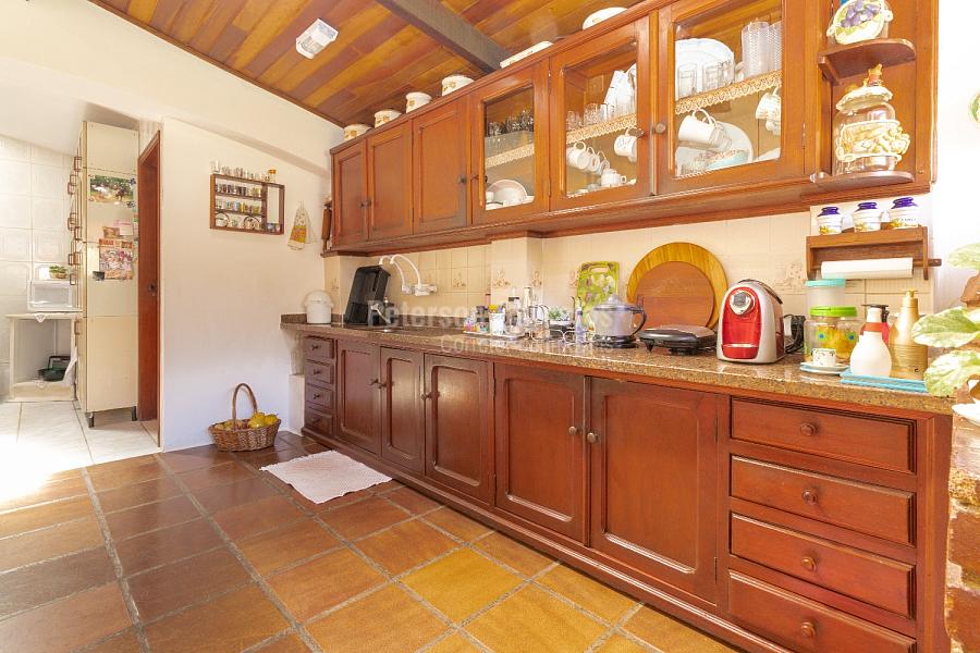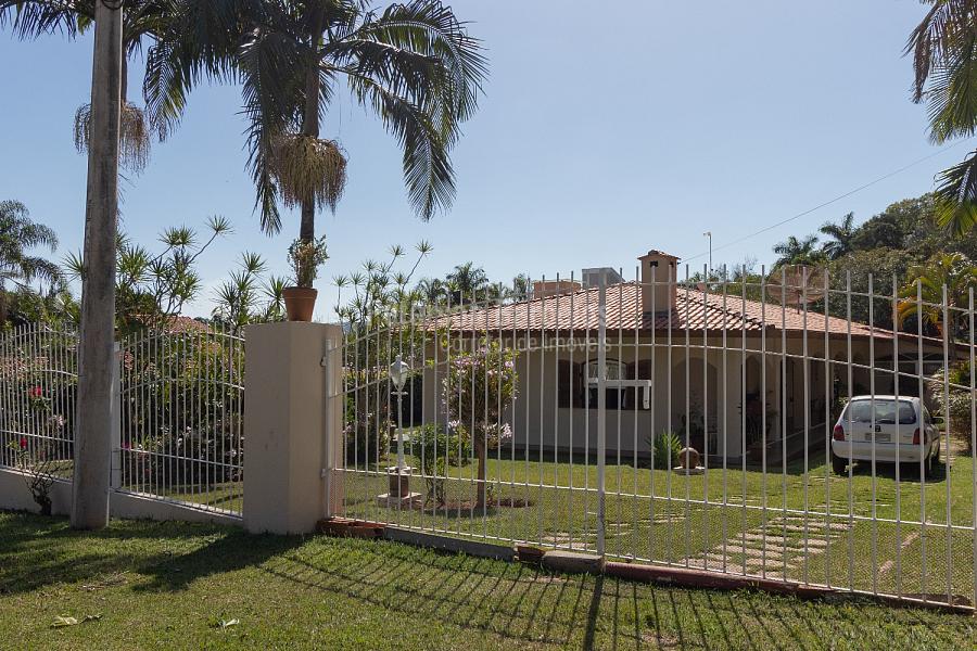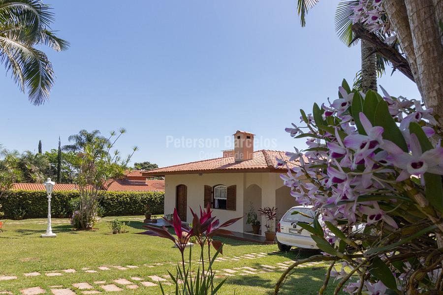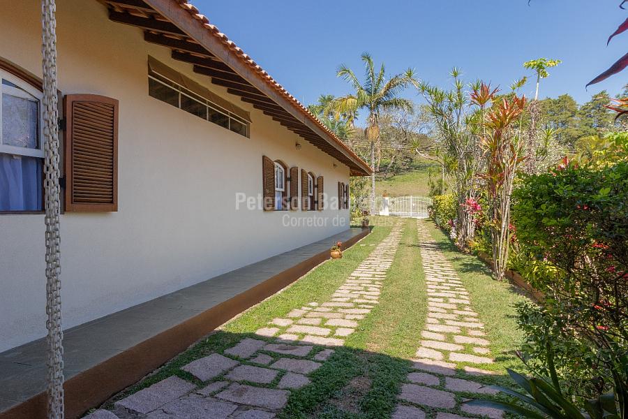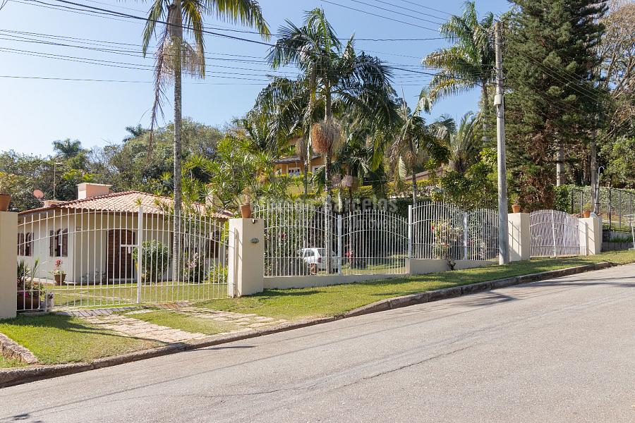 São 5 dormitórios, 1 suíte, sala de estar, em dois ambientes, sala de tv e jantar, cozinha, varanda com churrasqueira, piscina em alvenaria medindo 5x10m com profundidade entre 0,5 e 1,5m.