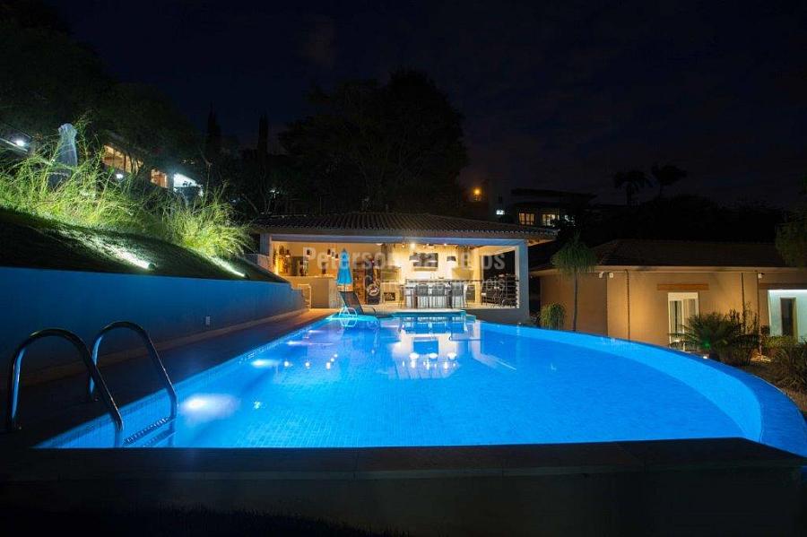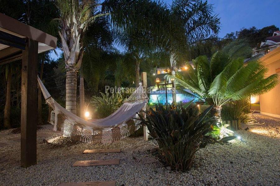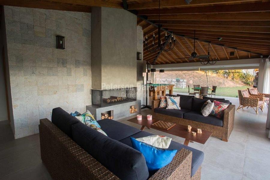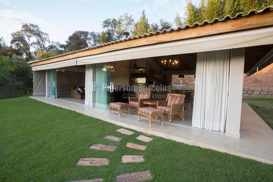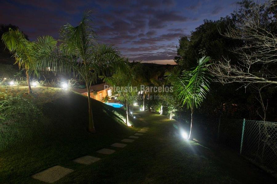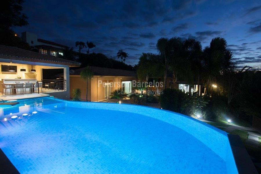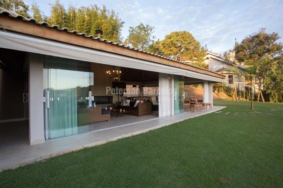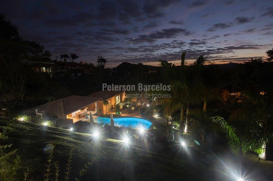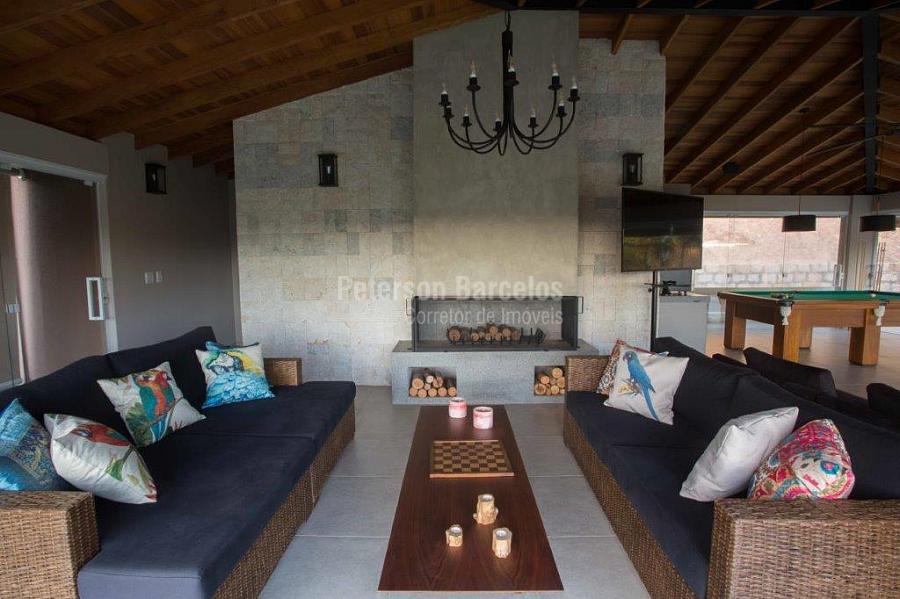 A precisão do moderno e funcional projeto entrega uma residência térrea, contendo: 5 suítes na casa principal, cozinha planejada com armários embutidos e integrada com sala de jantar e “home Theater”, área gourmet completa e equipada com armários, cooktop e bar, piscina com borda infinita e trocador de calor, Lounge completo com lareira e jogos, e uma vista panorâmica admirável. No Lounge ainda existe mais uma suíte.