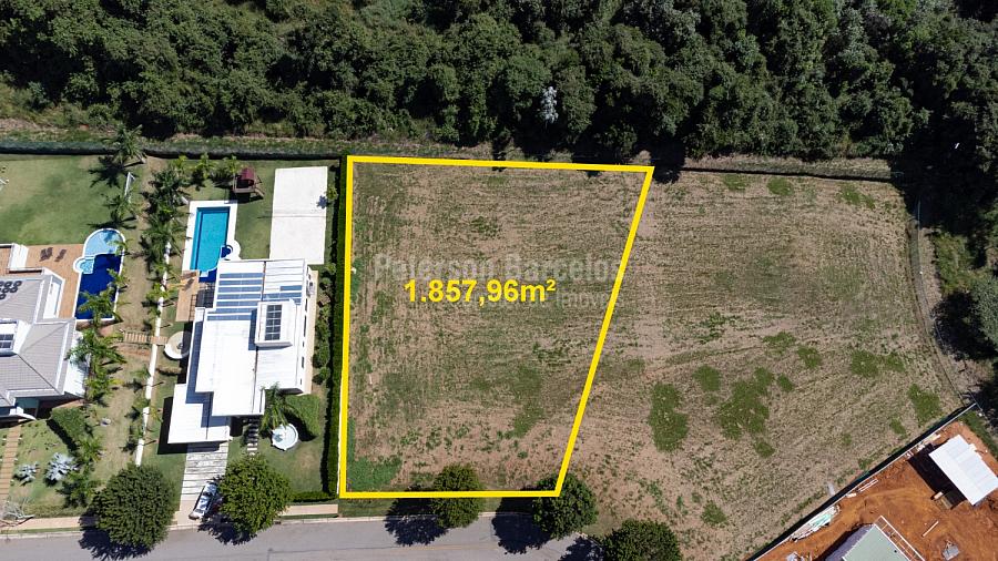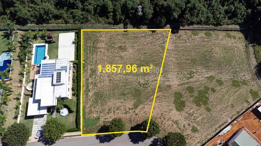 Lote com 1.857m² com topografia em leve declive e vista panorâmica permanente para montanha e área de preservação. Localização privilegiada e com construções finalizadas na lateral esquerda e frente.