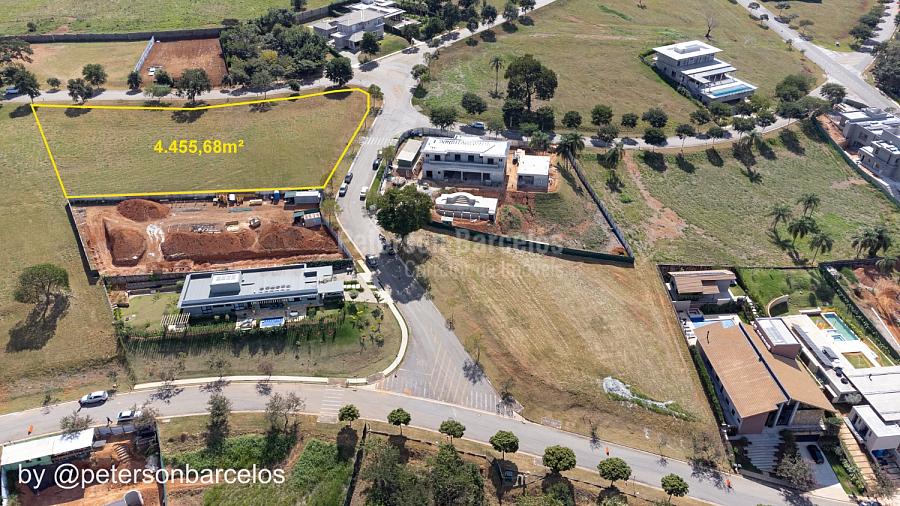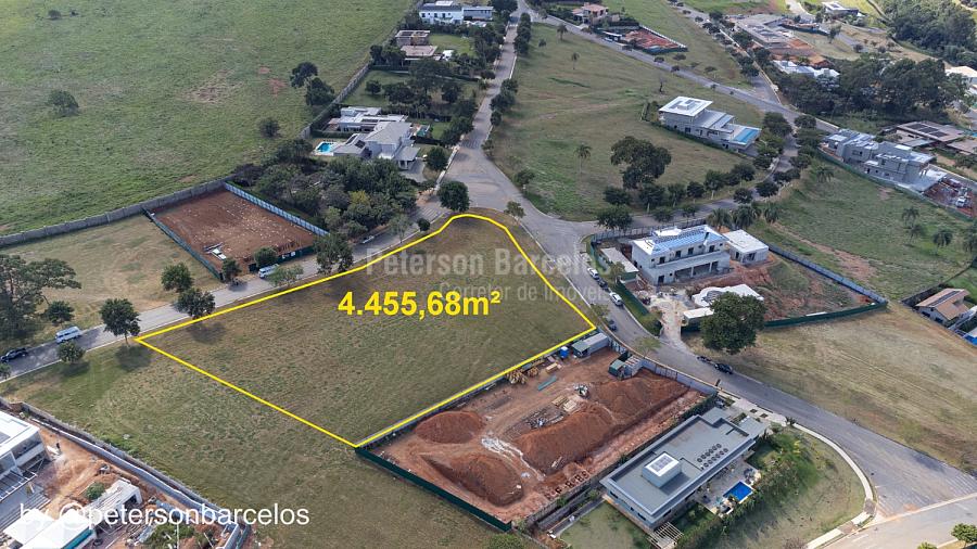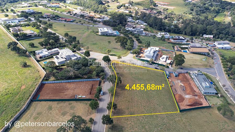 Ótima topografia, com linda vista panorâmica e próximo a uma das praças de lazer do condomínio. A área total do lote exposta neste anúncio representa a junção de dois lotes independentes (1.815m² e 2639m²).