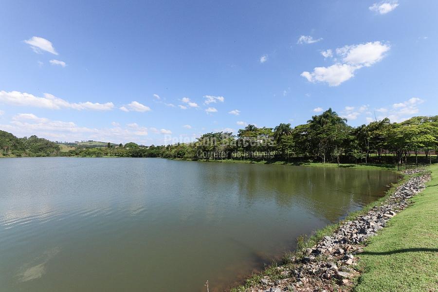 Lindo lote com topografia em leve aclive lateral, com localização próxima às áreas de lazer do condomínio e ao lago.