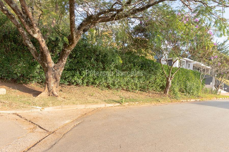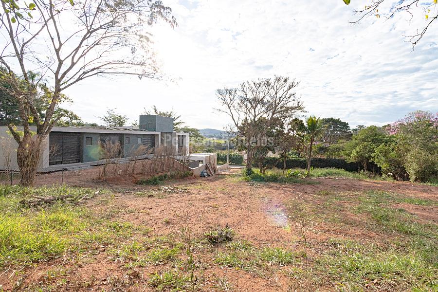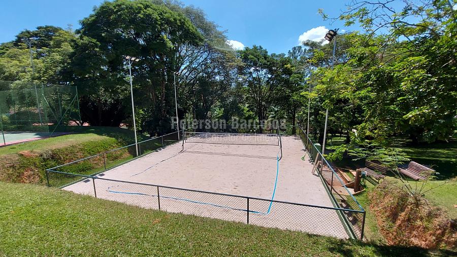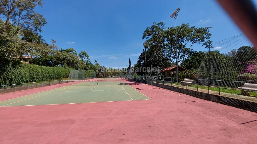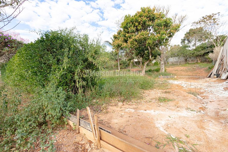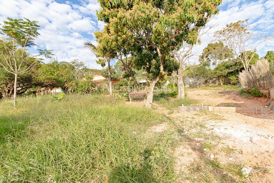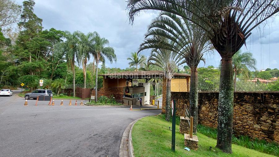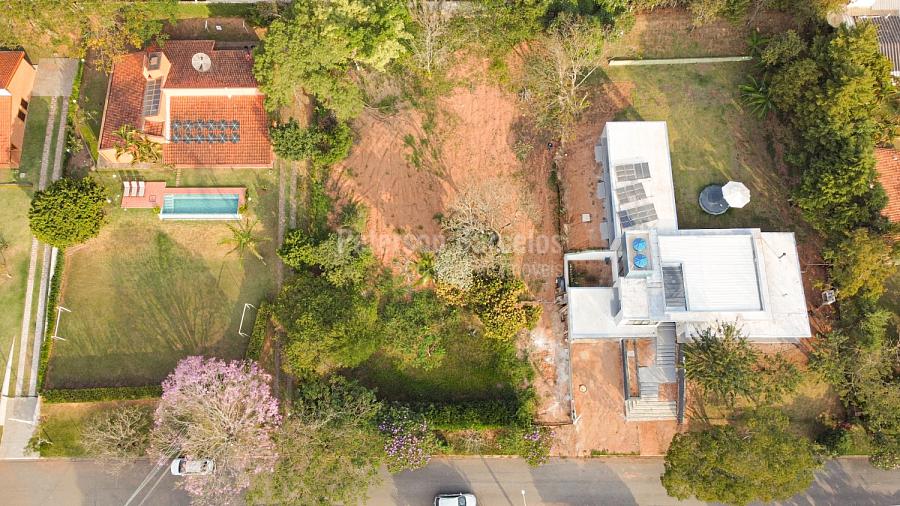 Terreno em leve aclive nos fundos, medindo 30m de frente e fundos e 50m em ambas laterais. Localização central do condomínio e com construções finalizadas em todos os limites do lote.